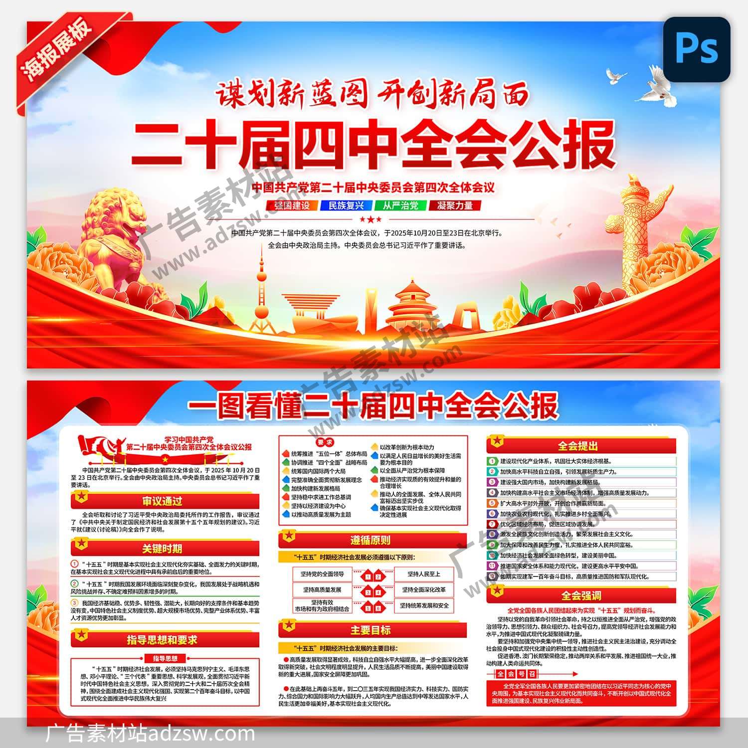 2编号 学习贯彻二十届四中全会公报精神展板宣传栏PSD素材